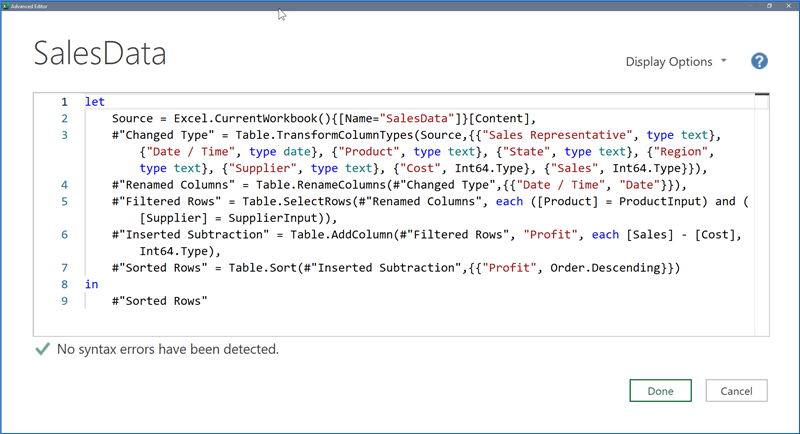 This is especially helpful when working with the Advanced Editor and viewing the query’s M code in its entirety.