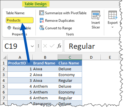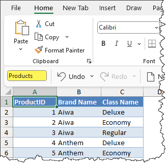 When working with proper Excel Data Tables, it’s common to give the table a more memorable name. This makes writing formulas and referencing columns more intuitive.