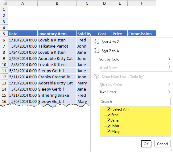 If we wish to filter by the [Sold By] column, we could use the old-school checkbox filter controls.