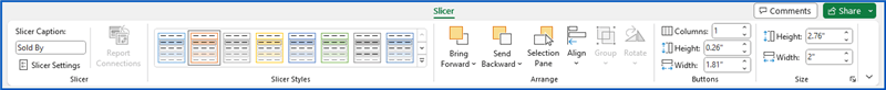 You can use the Slicer ribbon to apply various other customizations, like color, name, heading customization, number of columns, etc.