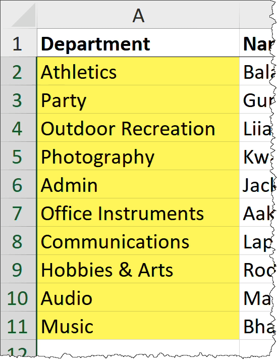 But what about lists specific to you? Lists that you use every day, like a list of departments? Imagine typing “Admin,” pulling the Fill Series handle down, and seeing all your departments listed automatically.
