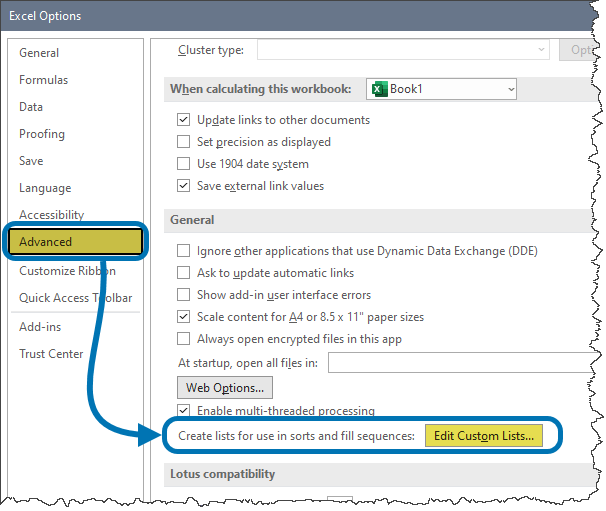 - In the General section, click on “Edit Custom Lists…”.