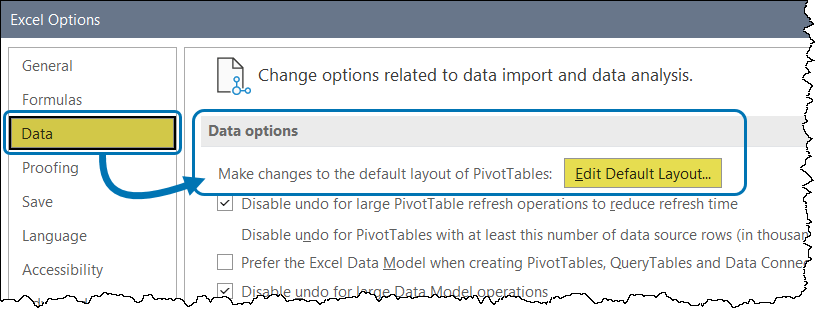 - In the Data Options section, click on Edit Default Layout….