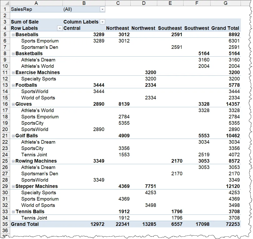 Instead of starting with a basic Pivot Table like this one …