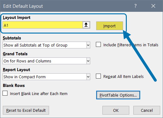 How to Set Default Pivot Table Layout Options