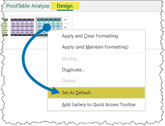 If you prefer a specific color scheme from the PivotTable Styles gallery, you can set it as the default:
