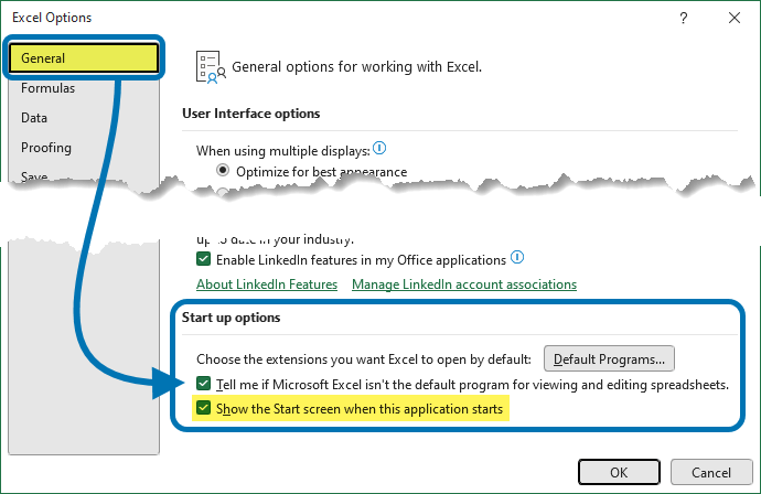 If you miss the old way of opening Excel directly to a blank workbook, you can turn off the start screen. Here’s how: