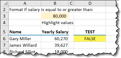 Because 60,000 is NOT greater than 80,000 the test results in a “False” response.