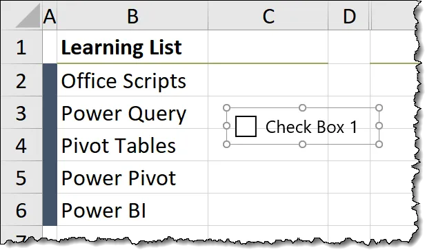 After you click the Checkbox control, click anywhere on the spreadsheet to add your first check mark in Excel.