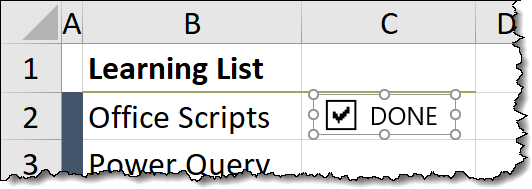 For our example, we want the check box that is hovering over cell C2 to save its state in cell C2.