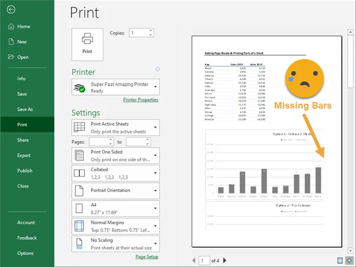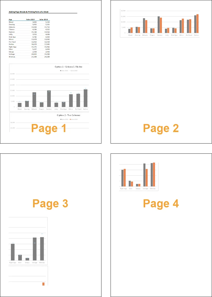 What if we want to print our list of apps and prices on one sheet and the charts on a separate page?