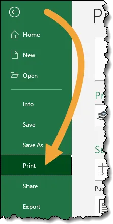 To engage the Print Preview mode, select the File tab to activate the Backstage view. From here, select Print.