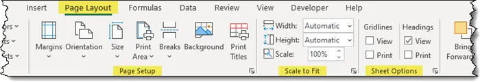 There are a few settings that can only be activated from the Page Layout ribbon or the Print window (there are even a few you must dig further for), so it’s a good idea to be familiar with all the locations Excel places print options.