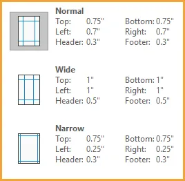 We can set the margins to one of the supplied preset margin combinations; normal, wide, or narrow.