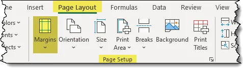 These same options can be accessed from the Margins button on the Page Layout ribbon in the Page Setup group.