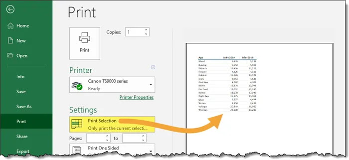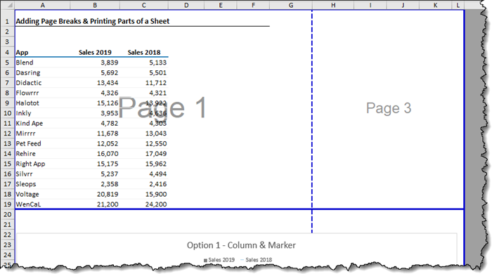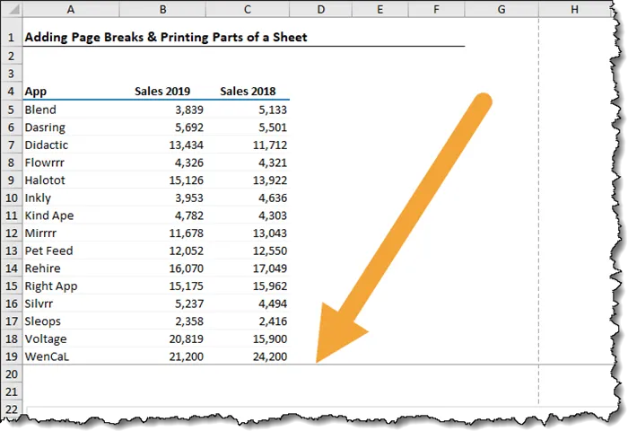 In the below example, we wish to print only the list of app names and their 2019 sales. We don’t want to print the entire sheet.