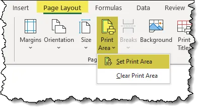 If this is a more long-term print need, we can highlight the desired data and select Page Layout (tab) -> Page Setup (group) -> Print Area -> Set Print Area.