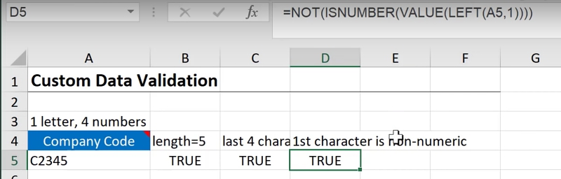 3. Make sure that the second character is not a number by using a combination of NOT(), ISNUMBER() and VALUE() functions: