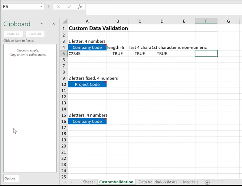 2. Set up the formula so that it shows whether an entry is valid or not.