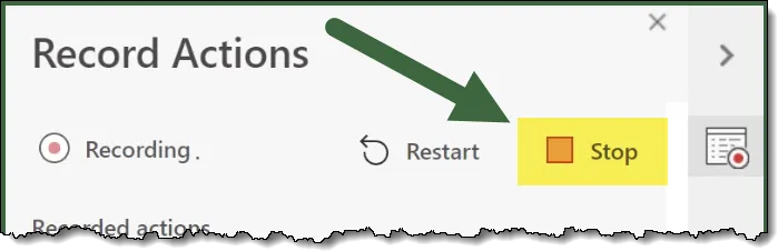 The Record Actions tool works like the Macro Recorder in desktop Excel, capturing each step as you perform it. When you start recording, a panel will open on the right, showing your actions.
