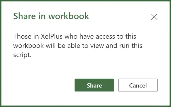 If you select SHARE as an option, those users who have been granted access to this workbook will also have access to the script.
