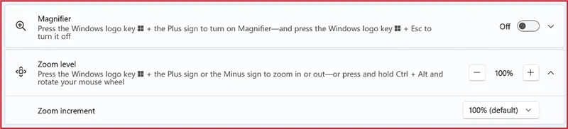 You can control the initial zoom factor when first pressing Win + Plus, as well as the zoom increment for each additional pressing of the shortcut.