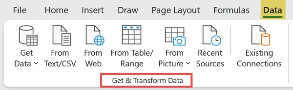 - Look for Get & Transform Data: Under the Get & Transform Data section, you’ll find all the Power Query options, like From Table/Range and From Text/CSV. You’re all set to start using Power Query!