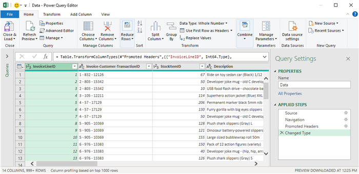 - Select your sales report file and click Transform Data. This will open it in the Power Query Editor.