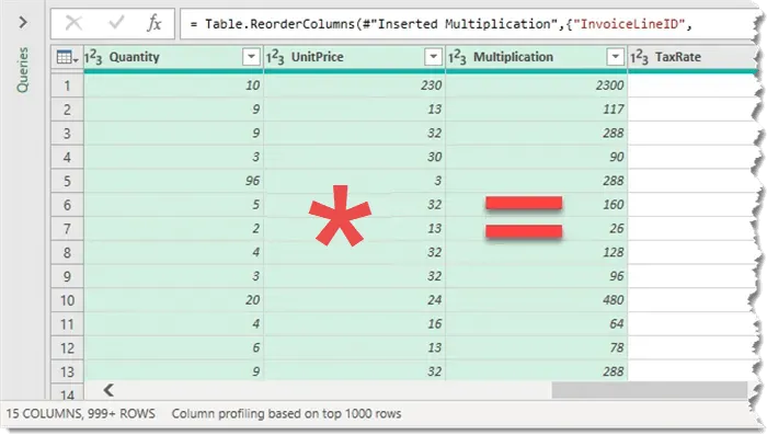 - Go to Add Column -> Standard -> Multiply.