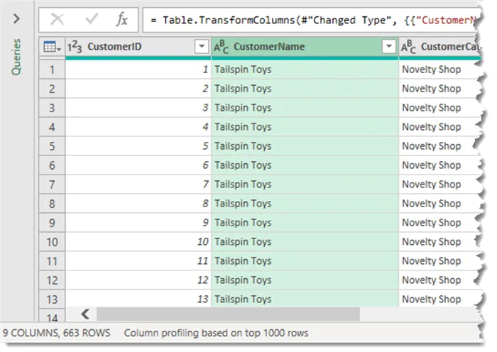 - Select the text file with the customer details and click Transform Data.