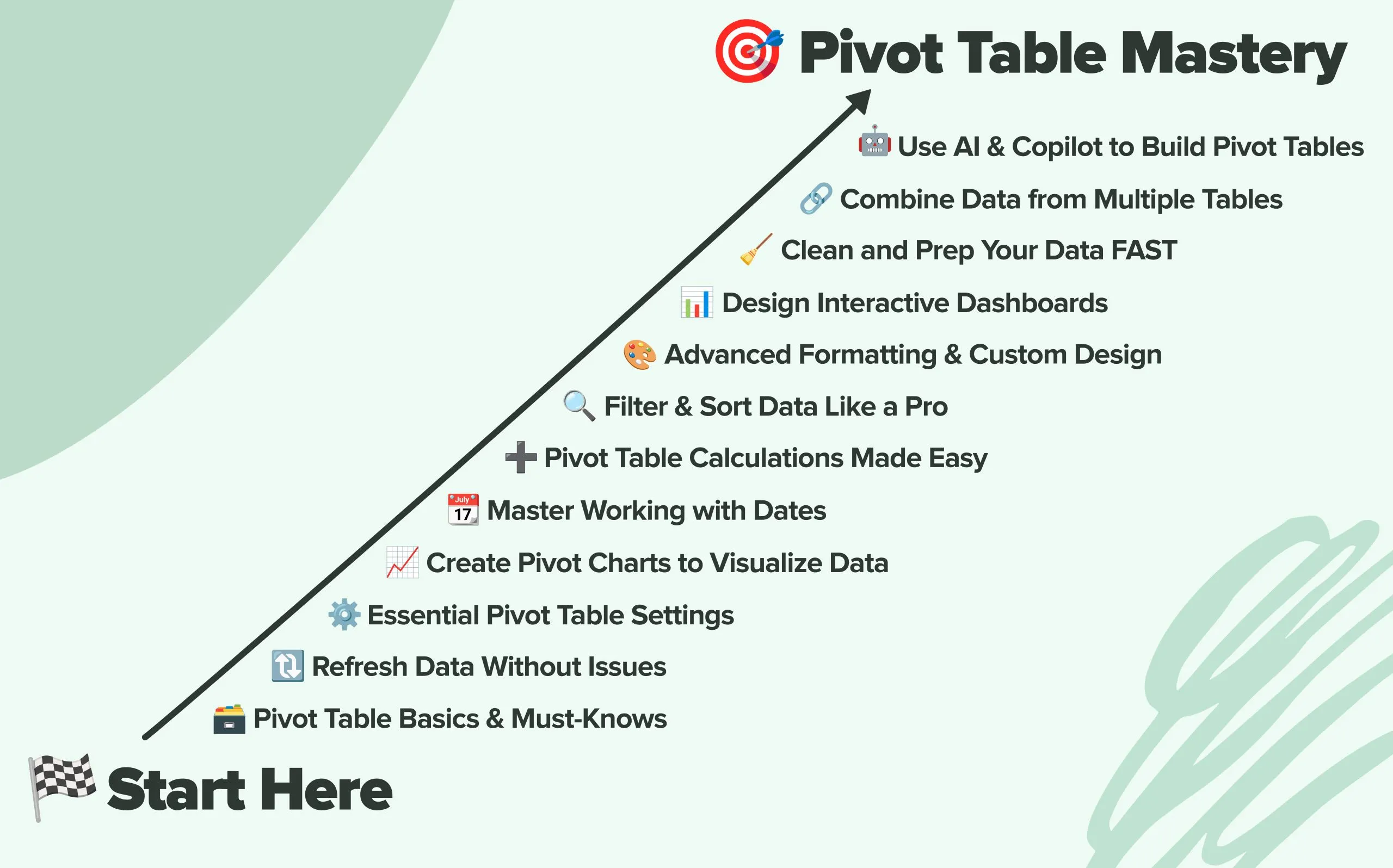 - Full Control: AI tools have limits. Mastering Pivot Tables gives you complete control over your data, allowing you to customize and refine your analysis to fit your exact goals.