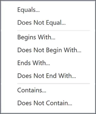 You can also filter using pre-build text filters for items that begin, end, include, or don’t include specific text.