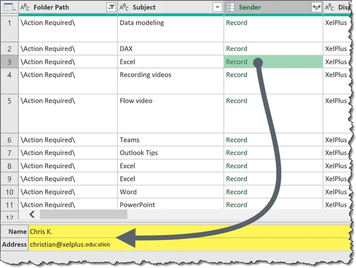 Once we have brought the Inbox information into Power Query, check out these categories across the top of the table.