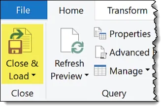 To send the results to an Excel Table, click the “Close & Load” button on the far left of the Home ribbon.