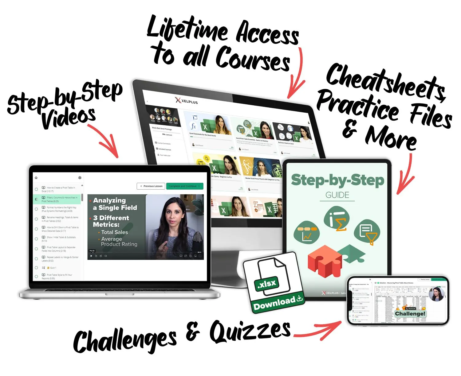 Includes our Excel Essentials Bundle + Power Bundle + More.
