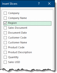 - In the Insert Slicer dialog box, select the categories you wish to filter.