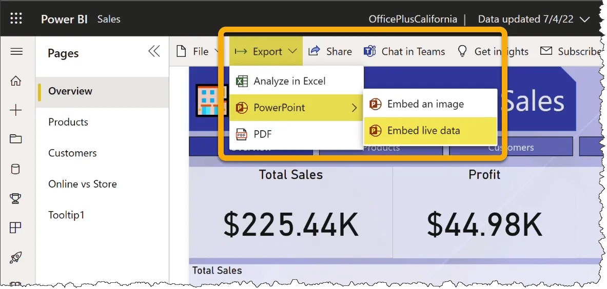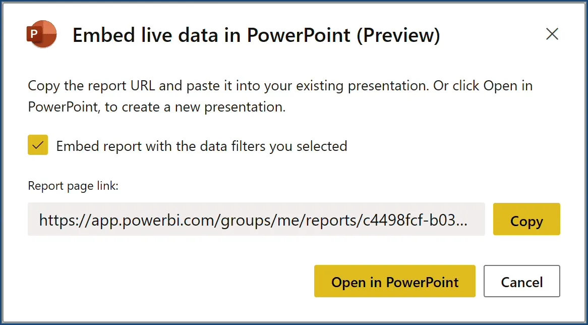 However, changes to the Power BI report at the source will flow down to PowerPoint when the slide link is refreshed.