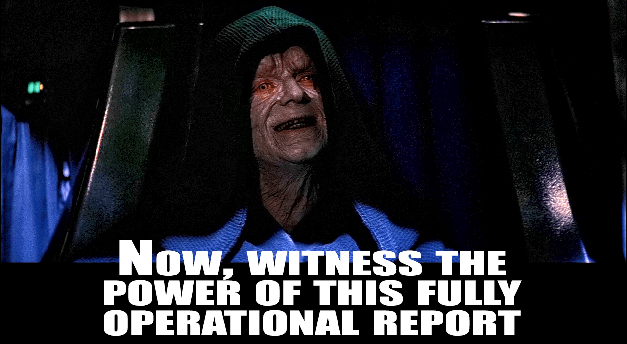 If you don’t wish to display the bottom banner with the report add-in controls, click the down-arrow button in the lower-right of the report.
