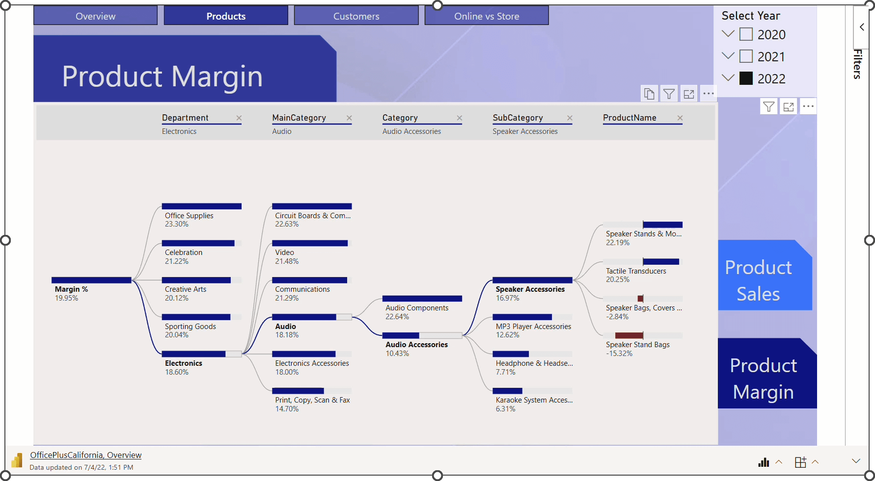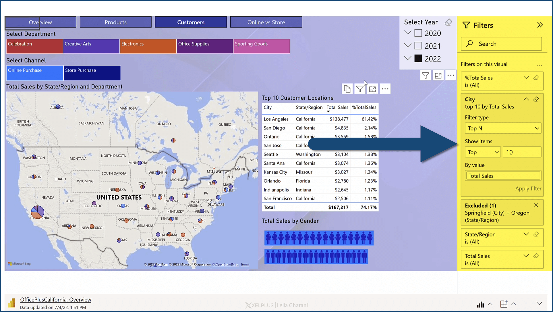 In addition to the report’s slicers and buttons working during the presentation, we can also leverage Power BI’s filter controls.