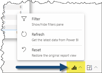 In the lower-right corner reside controls for hiding the filter pane, refreshing the data, and resetting the report.