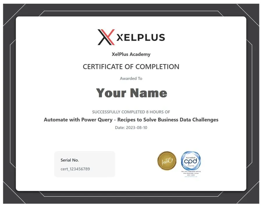 After completing the course, you’ll receive a digital badge. It shows potential employers that you have mastered advanced Power Query techniques and automation skills including the use of Power Automate to streamline processes.