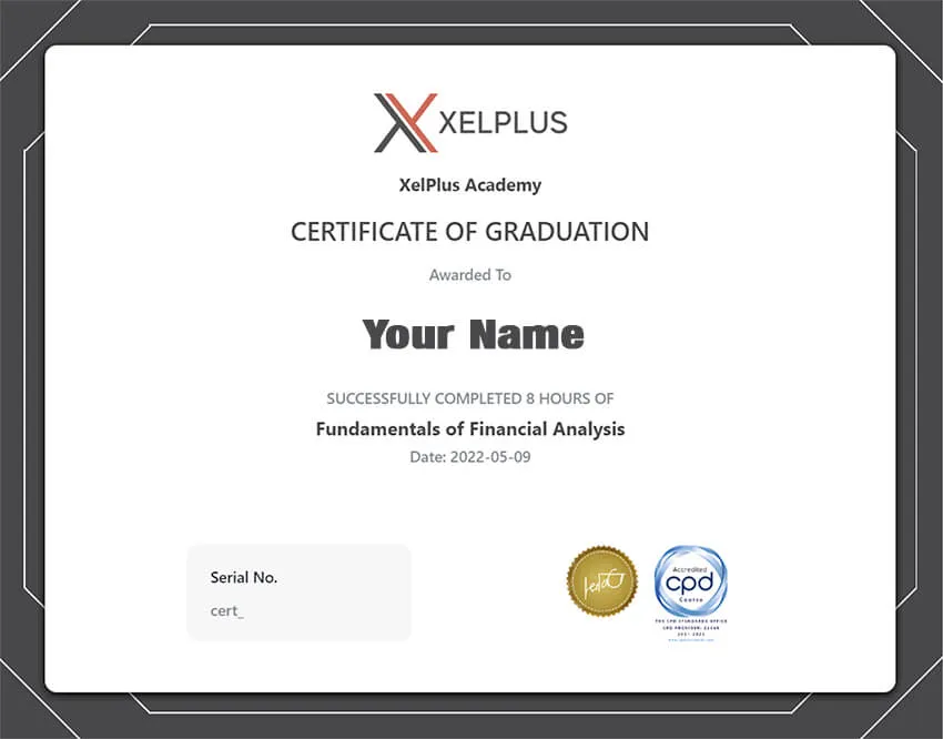 I’m excited to announce this Online Financial Analysis course is now CPD certified. The Continuing Professional Development is a top global accreditation, trusted by companies and industries worldwide.