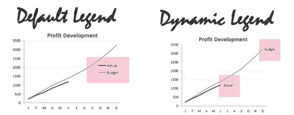 You don’t need to use dynamic labels all the time. Use them when they make your charts clearer. Think about your audience. For some charts, the default legend is fine. For others, dynamic labels are better.