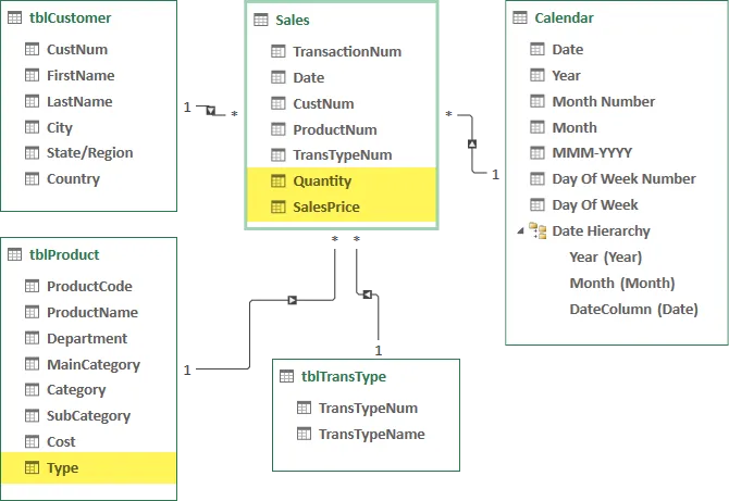 In each instance of the DAX CALCULATE function, we want to multiply the [Quantity] by the [SalesPrice].