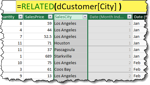 =RELATED(dCustomer[City] )