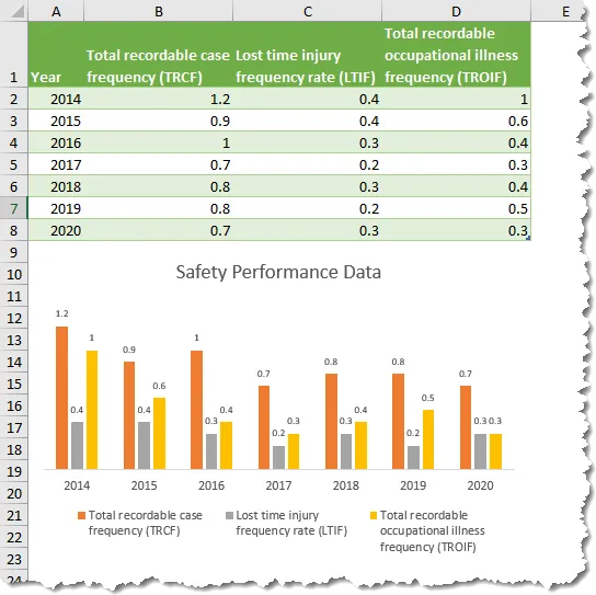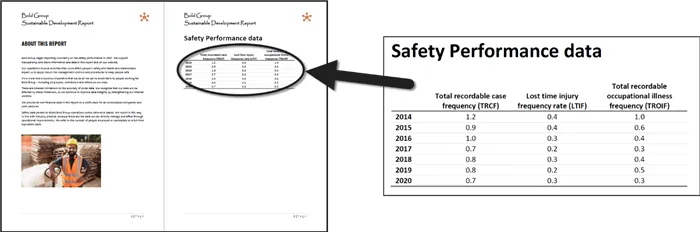 Imagine we have a safety report with performance data stored on the second page in a table format.