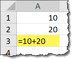Imagine you want to add two numbers. You could type =10 + 20 directly into Excel.