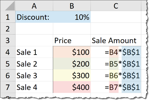Imagine you have a discount in cell B1 that you want to apply to all items in a column. You’d use $B$1 to ensure every formula refers to the same discount.