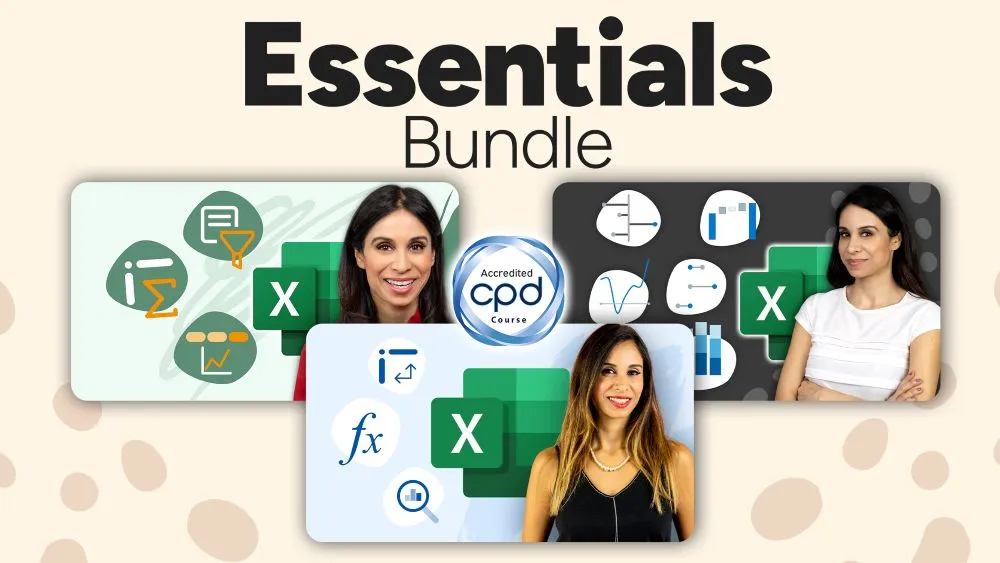 The Excel Essentials Bundle gives you lifetime access to three of our bestselling courses – including all their bonus items.