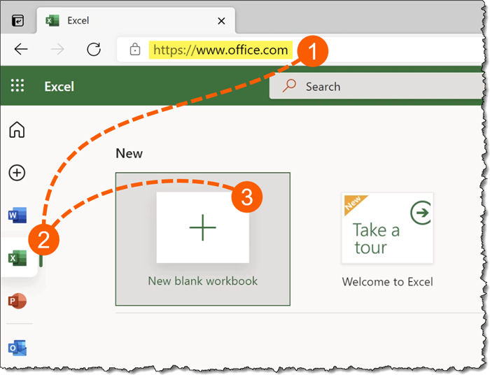 Login to the Office.com website with your Microsoft 365 account, launch Excel for the Web, and start a blank workbook.